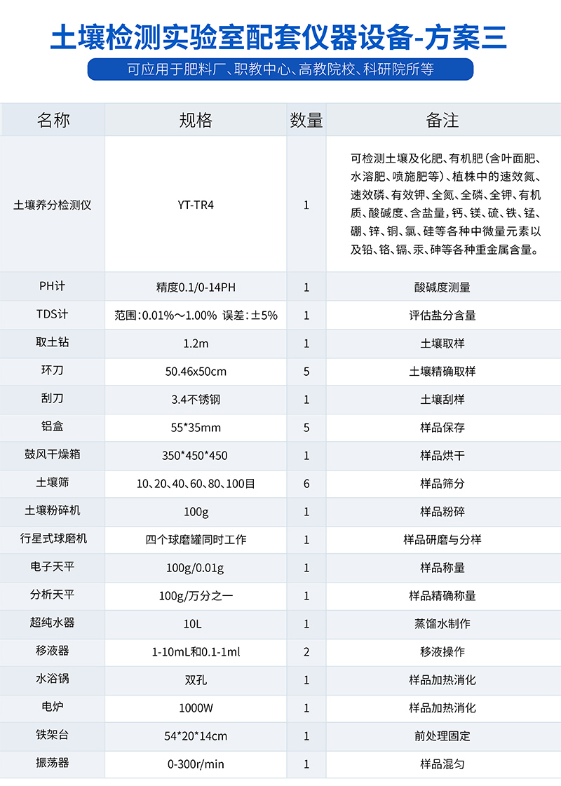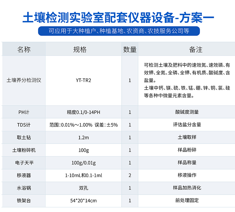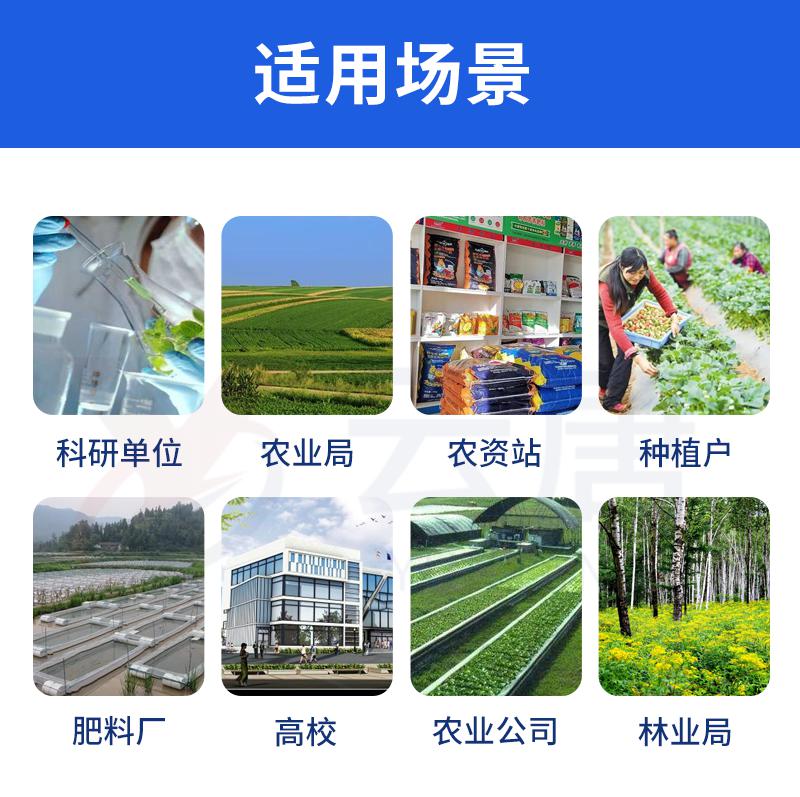 配套齐全:该仪器集药、器、仪为一体,携带方便,相当于一个小型移动实验室,无需用户自配附件,亦可灵活野外流动测试。适于农业服务部门或农资经销商、高教院校、科研院所、合作社、肥料厂商、大种植户测土施肥和鉴别肥料真假及环保检测应用。